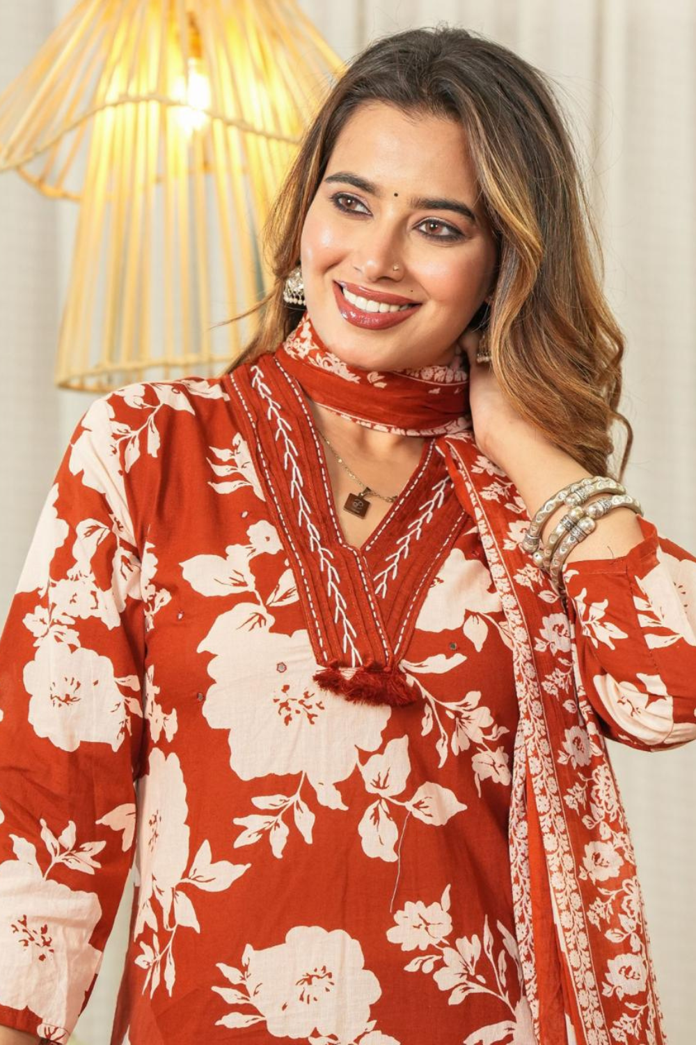 This Rust Floral Cotton Suit Set is a blend of comfort, elegance, and sustainability — perfect for women who love to carry tradition with grace. The soft cotton fabric, detailed floral motifs, and classic rust tone together make it a wardrobe essential that celebrates timeless Indian craftsmanship. Whether you’re attending a small event or simply enjoying a relaxed day, this ensemble keeps you glowing with confidence and charm.