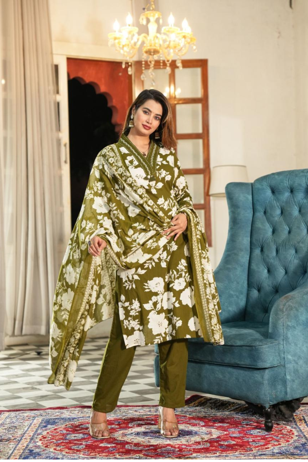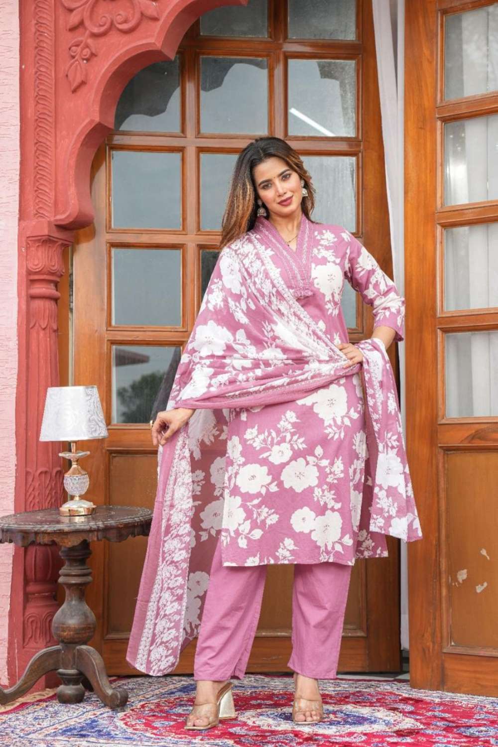 Dupatta: Lightweight cotton dupatta with matching floral prints and an elegant border, adding a touch of refinement and flow to your outfit.